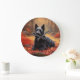 Scottish Terrier in Autumn Leaves Fall Inspire Large Clock