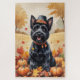 Scottish Terrier In Autumn Leaves Thanksgiving Art Jigsaw Puzzle