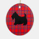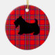 A black scottish terrier against a red plaid pattern decorates this holiday ornament. Use this cute scottie dog ornament as a Christmas tree decoration, holiday decor, Christmas decor, a gift, gifts, etc....The designs are from original art.
