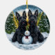 Scottish Terriers and Snowman Christmas Ceramic Ornament