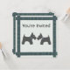 This Scottish theme wedding invitation has a stylish black watch tartan ribbon border. It features two black Scottie dogs on the front with tartan accessories. The reverse has the green and blue tartan ribbon border and fully customisable text to personalise your invitations.