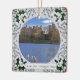 Linlithgow Palace was home to the Royal Stewart, later Stuart, family in the 15th and 16th centuries. Mary Queen of Scots was born here. It is located in West Lothian, between Edinburgh and Stirling. Owned and maintained by Historic Environment Scotland, the site is open to the public year round. This stunningly bright photograph features the structure across the loch graced by white swans. The photograph is framed by a vintage Christmas look of painted metal, decorated with holly leaves and berries. On the back, in a red script font, is a brief history of the structure and family. No matter how you spell your Stewart/Stuart name, make this ornament your own by changing the spelling in the medallion on the front and in the back story, if you wish. Remember to change the year date. "Linlithgow Palace" by SR Photies is licensed under CC BY-SA 2.0 It has been modified for colour, contrast, size, resolution and additives, including text.https://creativecommons.org/licenses/by-sa/2.0/?ref=ccsearch&atype=rich