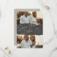 A unique save the date design featuring two horizontal or portrait orientated photos, aligned at the top and bottom bisected by a deep grey element with a "torn" look. "Save the Date" appears in casual handwritten script lettering, with your names, wedding date, and location alongside. Personalise the back with additional details, like your wedding website.