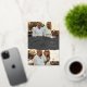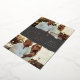 A unique save the date design featuring two horizontal or portrait orientated photos, aligned at the top and bottom bisected by a deep grey element with a "torn" look. "Save the Date" appears in real foil handwritten script lettering, with your names, wedding date, and location alongside. Personalise the back with additional details, like your wedding website.