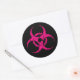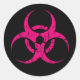 Scratched Pink Biohazard Symbol on Black Classic Round Sticker