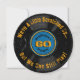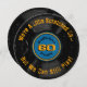 Funny 60th birthday design with a scratched vinyl record. Label says 60th BIRTHDAY PARTY. Outside border text says WE'RE A LITTLE SCRATCHED UP... BUT WE CAN STILL PLAY. Customisable text on front and back label. PinkInkArt original!