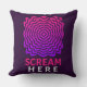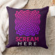 Scream in style. This vibrant throw pillow makes a bold statement with pulsating pink and purple ripple waves and loud “SCREAM HERE” text in bright pink. It's the perfect blend of humour, stress relief, and eye-catching design.