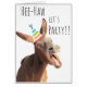 Get ready for a wild and whimsical celebration with this singing donkey birthday card! Featuring a delightful donkey graphic and the words 'Hee-haw, let's party,' this card sets the tone for a fun-filled extravaganza. The cheerful donkey invites you to join in the festivities, promising a memorable and joyous birthday experience. Send this card to your loved ones and let the donkey's infectious enthusiasm bring laughter and merriment to their special day. It's time to embrace the playful spirit and get ready to party with this lively singing donkey birthday card!