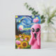 A screaming pink alien AI generated art that is a parody of some of histories fine artists combining elements of The Scream by Edvard Munch with some Van Gogh like sunflowers and Starry Night and maybe it's screaming because it is raining cottoncandy from the sky
