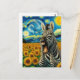 Screaming Zebra in a Faux Van Gogh Sunflower Field Postcard