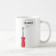 A funny graphic of a screw driver with a red handle and the text "Eh, screw it" in a speech bubble on a mug