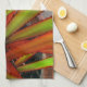 The young, green and orange tropical plant, in the original photograph by ZoeSPEAK on this Kitchen Towel, is called a screw pine. It is actually a distant relative of palm trees, called "screw pine" because of the spiralling way it grows, and the fruits that look like pine cones.