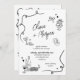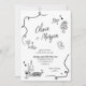 This wedding invitation features a whimsical and playful scribble doodle design, making it a fun and unique all-in-one invitation. The front showcases the couple's names in a modern script font, accompanied by hand-drawn doodles of celebratory items like wine glasses, rings, and a cake. The back provides essential wedding details. The invitation can be made even more vibrant by changing the colour of the doodle emblems and text, adding a personalised touch to this charming design. You can edit it by clicking the "Edit using design tool" button.