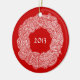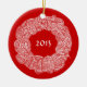 Scribbleprints Wreath - White, on Red Ceramic Ornament