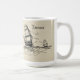 A design that reminds us of antique scrimshaw decorates this coffee cup. It shows two sailing ships racing along with their sails unfurled and your name in openwork text.