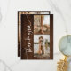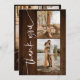 Modern simple and elegant brush script with 5 photos collage grid wedding thank you on on brown country barn rustic wood.