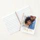 The Script Across Us notebook showcases a centred full-width photo with a flowing cursive phrase reading This is Us across the bottom. A soft gold line and heart accent add warmth, while the clean white background creates a modern, minimal design filled with emotion.