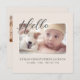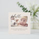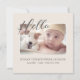 Script Baby Photo Modern Birth Announcement. Multi-photo Birth Announcement square card with place for a feature baby photo on the front and two smaller photos on the back. Minimal modern design with script Hello on the front of the birth announcement.