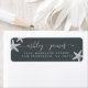Chic, modern black and white coastal wedding return address label with your names in light gray elegant hand written script calligraphy on an off-black background and a stylish touch of starfish. Simply add your names and address. Exclusively designed for you by Happy Dolphin Studio. If you need any help or matching products please contact us at happydolphinstudio@outlook.com. We're happy to help you make your wedding the most beautiful day!