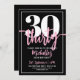Introducing a simple and modern 30th birthday party invitation, perfect for celebrating this milestone in style. The sleek design features a bold black background with a prominent "30" at the top. Below, "Thirty" is elegantly written in script calligraphy, adding a touch of sophistication. The text throughout the invitation combines a mix of simple modern and script fonts in white and pink, creating a striking contrast against the black backdrop. A clean white frame around the edge completes the design with a touch of elegance. This invitation is ideal for a chic and stylish 30th birthday celebration. The background colour, fonts, and frame can all be customised to match your style. Modern Black 30th Birthday Party Invitation Thirty Years Old Bold Sassy Girly Invite.
