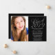 An elegant black and silver script font class of 2019 graduation party announcement. Perfect for a high school senior graduation, college graduation or graduation party! Designs are flat printed illustrations/graphics - NOT ACTUAL SILVER FOIL. To resize and position your photo, click on the "CUSTOMIZE" button.