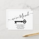Simple minimalist black and white key with elegant script calligraphy moving announcement