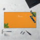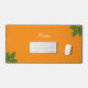 Script Calligraphy & Laurel Leaves on Orange Desk Mat