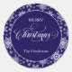 Minimal, simple and modern blue sticker with a white swirly script font, custom text and snowflakes.