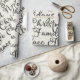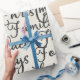 Elegant Christmas wrapping paper. Features stylish script with Christmas related words. Minimal style, with Black script on an off-white background.