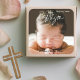 Calligraphy Cross Christian Baptism sticker with personalised photo and text.