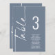 Script Dusty Blue Table Number Names Seating Chart. Edit you number for each table and add to your cart separately. Same design is on both sides, use for a hanging display so guests can find their seat or on each table. In light blue with white writing. Easily personalise the table number and your guest names. The same design is on both sides and will update simultaneously as you change the words to your own.