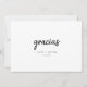 On the front of this card, 'gracias' takes centre stage, scripted in calligraphy, creating an artistic focal point. Personalise with names and the date to make each card uniquely yours. Flip to the back, and a cherished photo occupies the left side, with a heartfelt 'gracias note' on the right, expressing your thanks with love.