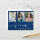 Script Graduate 3 Photo Collage Blue Graduation Announcement Postcard