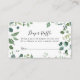 This script green foliage diaper raffle ticket enclosure card is perfect for a modern baby shower. The design features watercolor hand-drawn elegant botanical eucalyptus branches and leaves, arranged in beautiful bouquets and geometric patterns.