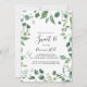 This script green foliage sweet 16 birthday party invitation is perfect for a modern birthday. The design features watercolor hand-drawn elegant botanical eucalyptus branches and leaves, arranged in beautiful bouquets and geometric patterns.