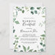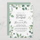 This script green foliage wedding breakfast invitation is perfect for a modern event. The design features watercolor hand-drawn elegant botanical eucalyptus branches and leaves, arranged in beautiful bouquets and geometric patterns.