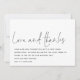 Script Love Thanks Photo Wedding Thank You. Love and thanks is in a set handwritten style with the details beneath. Lots of white space at the top for a contemporary touch! Easily personalise the rest of the text to your own details and replace the sample photo on the back with your own which will automatically change to black and white. If you wish to remove the black and white filter click customise further and chose the filter option and select No Filter.