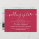Script magenta and white wedding downsizing photo announcement