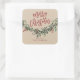 A festive, red, green and white merry Christmas gift sticker, favour sticker or envelope enclosure featuring bold script and watercolor greenery with leaves and berries.