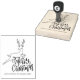 This "Merry Christmas" rubber stamp features a modern line art deer, a message and a custom family name.