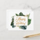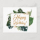 Script Modern Green Leaves Happy Birthday Postcard