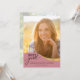 This Class of 2023 photo graduation party invitation features a large photo with a modern wave shape and is accented with an addition gold wave on a rose gold background. The back side offers another photo that fills the entire back and custom text for your grad party invitation.