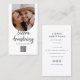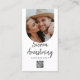 Modern and professional photography business cards featuring your photo with trendy minimalist script typography alongside your QR code. Add your contact information to the back. Includes three social media icons and a field for your username.