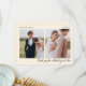 The Chic Elegant Script Photo Wedding Thank You Cards Collection features a timeless and sophisticated design, perfect for expressing gratitude after your special day. Showcasing graceful script typography paired with a clean, modern layout, this collection highlights your favorite wedding photos while keeping the focus on heartfelt appreciation. The elegant lettering and refined aesthetic create a beautiful balance of romance and simplicity, making each card a meaningful keepsake for friends and family who shared in your celebration.