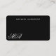 Give your business a classic and clean look with the Gold Faux Monogram Script Black Background Business Card. Perfect for corporate positions, makeup artist, event planners, stylist and much more. Add your text and business information, these cards are template ready. For any design requests contact the designer. ©2010 Joshua Martin