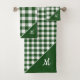 Script Monogram Green White Buffalo Plaid Pattern Bath Towel Set