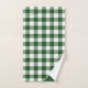 Stylish custom towel set features a handsome green and white buffalo plaid with a white script monogram in a dark green triangle in the lower right corner of each piece. Customise it with your initial in the sidebar. Hunter green, white, and light green squares form a bold checked pattern. Buy the full set or any piece of it.