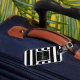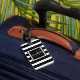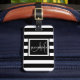 Stylish striped luggage tag featuring a scripted monogram of your initial and surname as the centre piece with your personalised contact details on the back.