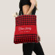 Script monogram, red black buffalo plaid tote bag