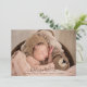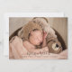 Modern baby photo birth announcement for girl or boy. Simply use this template to add your own custom photo on the front and back of the card; of your own sweet baby and personalise with baby's name in the elegant trendy script typography.